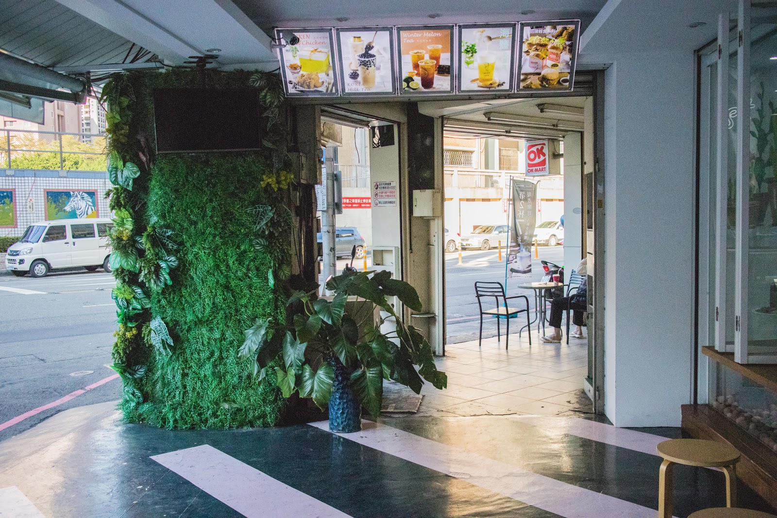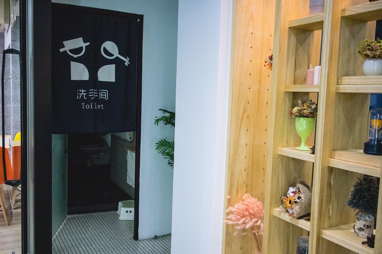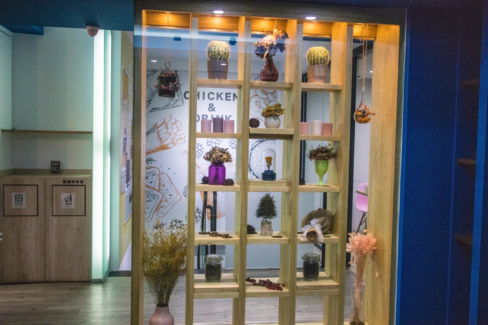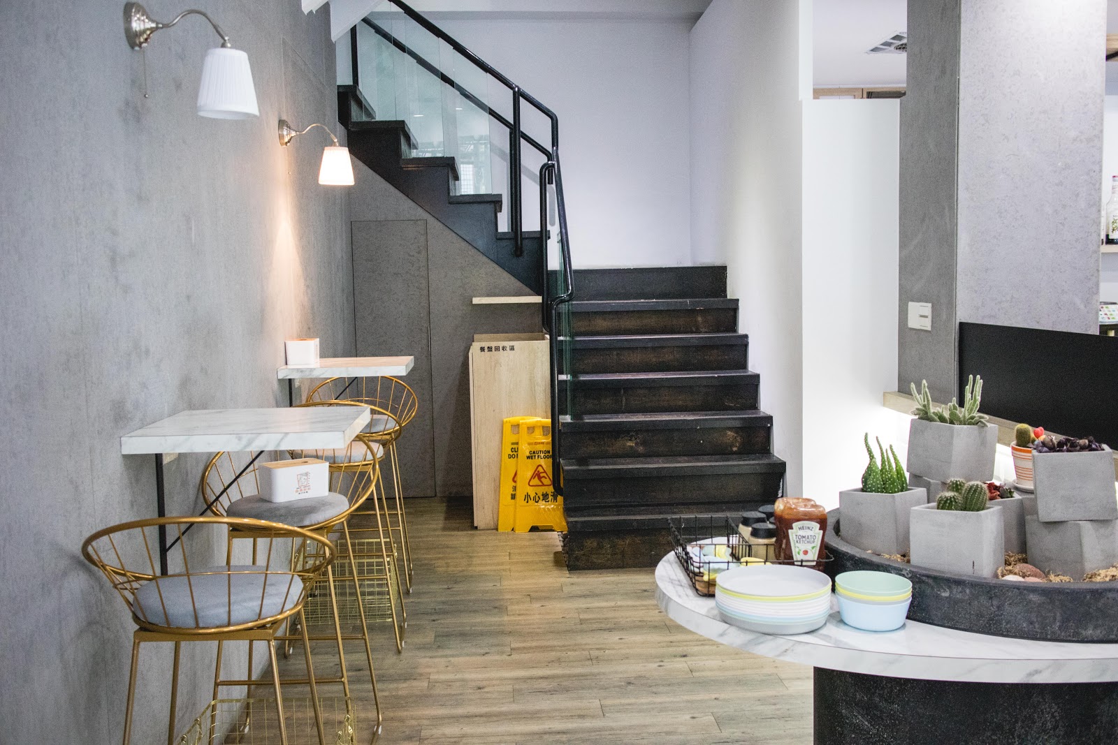 一樓環境走森林系,能看到植栽與灰牆面。