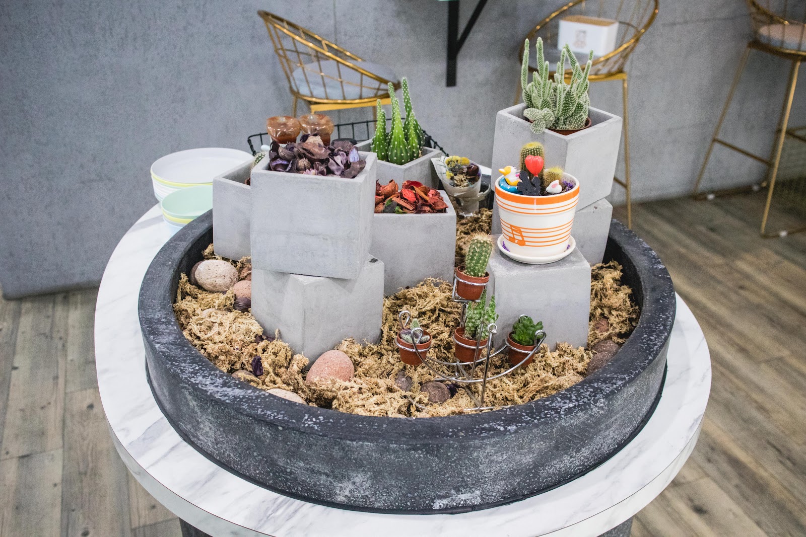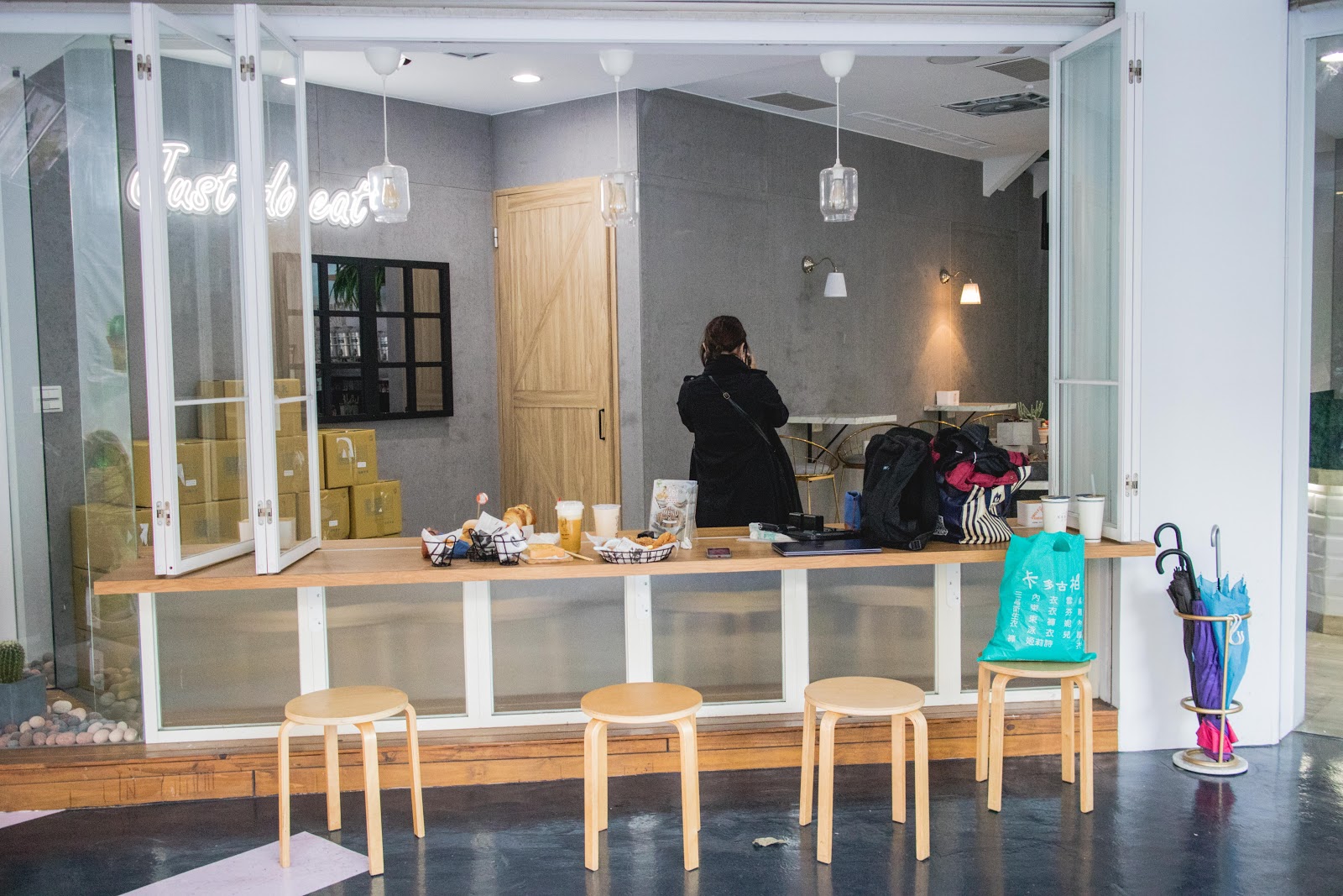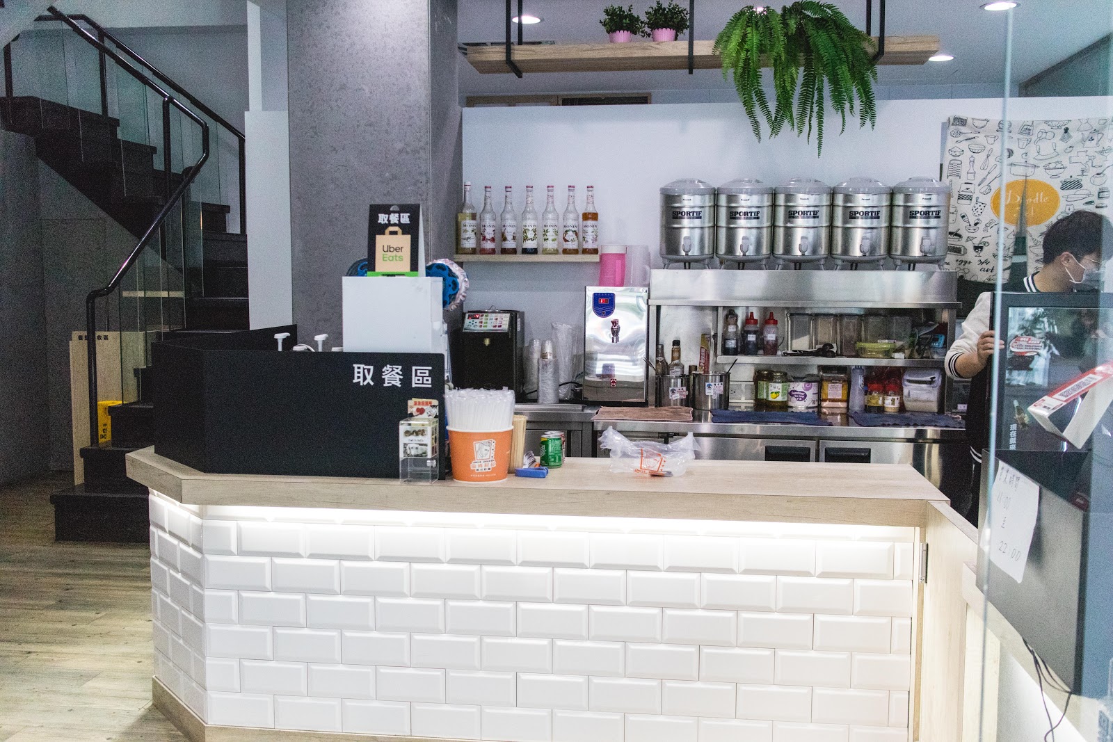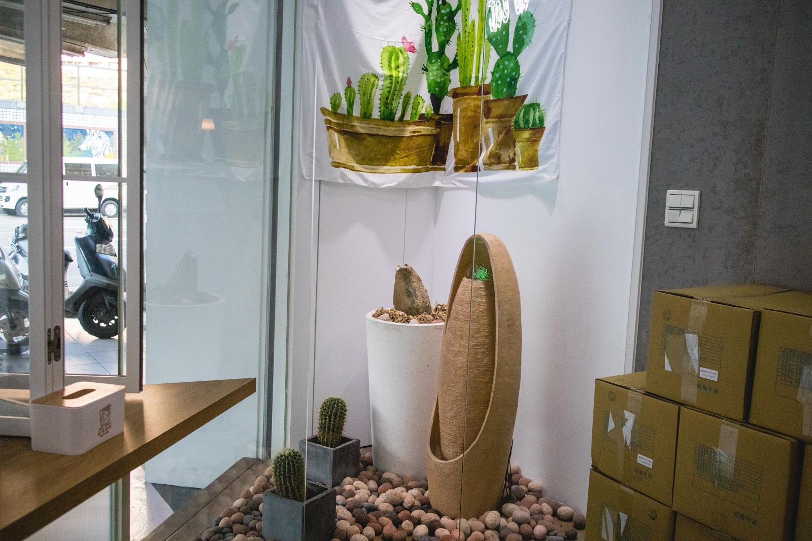 一樓環境走森林系,能看到植栽與灰牆面。