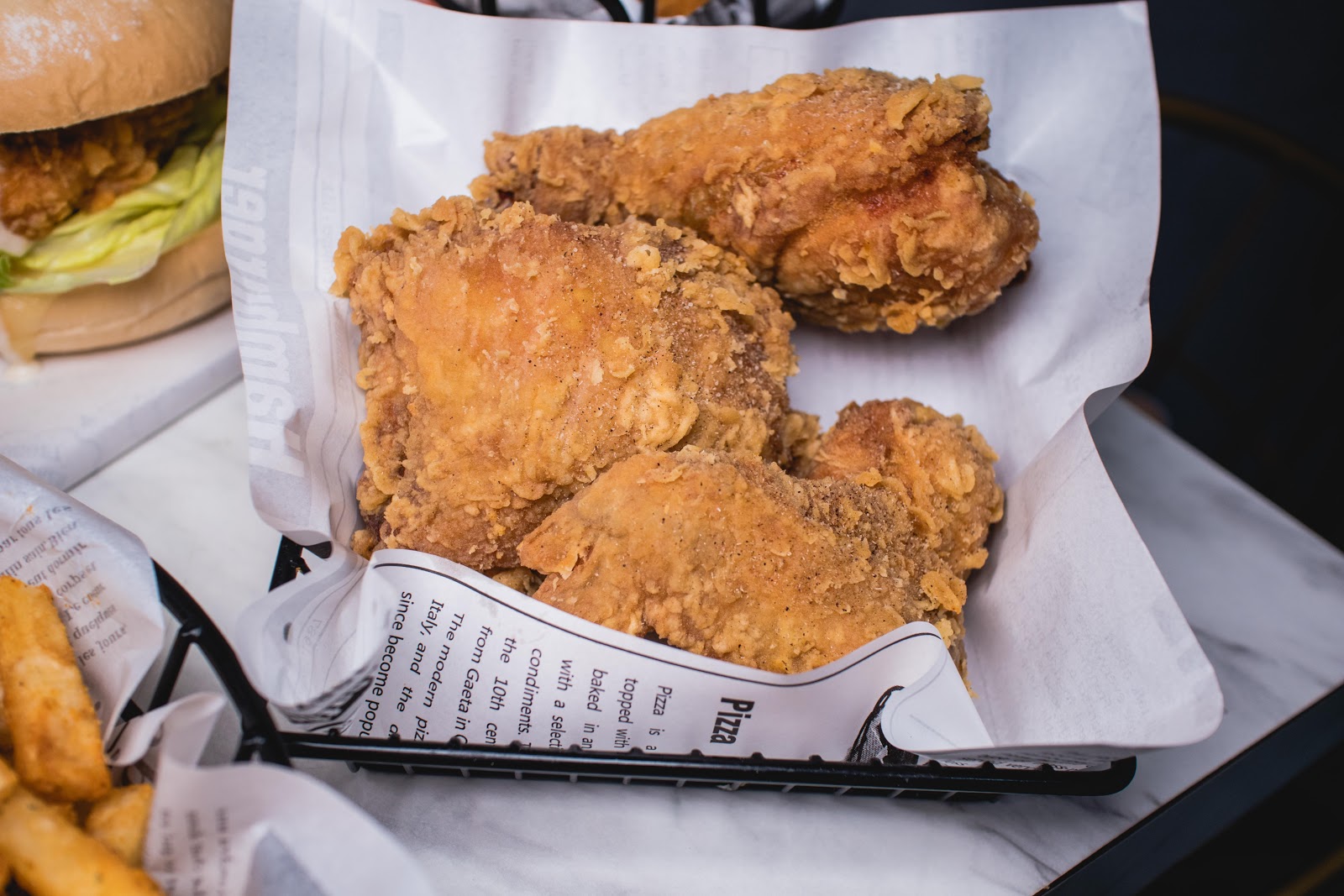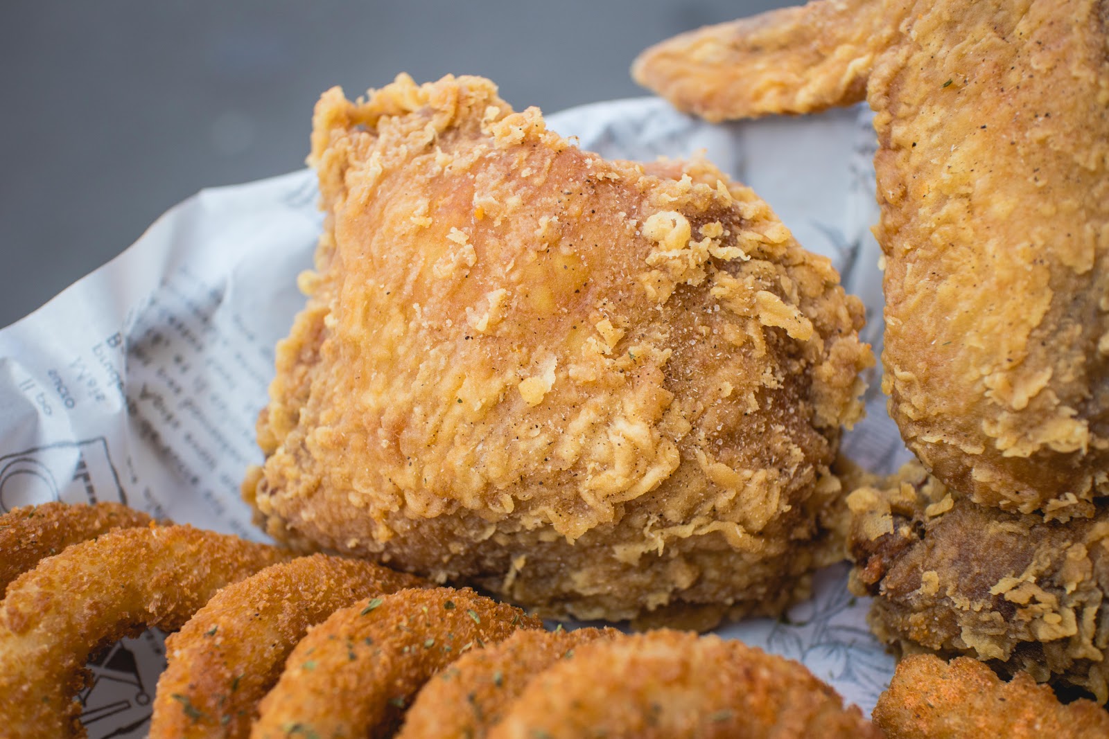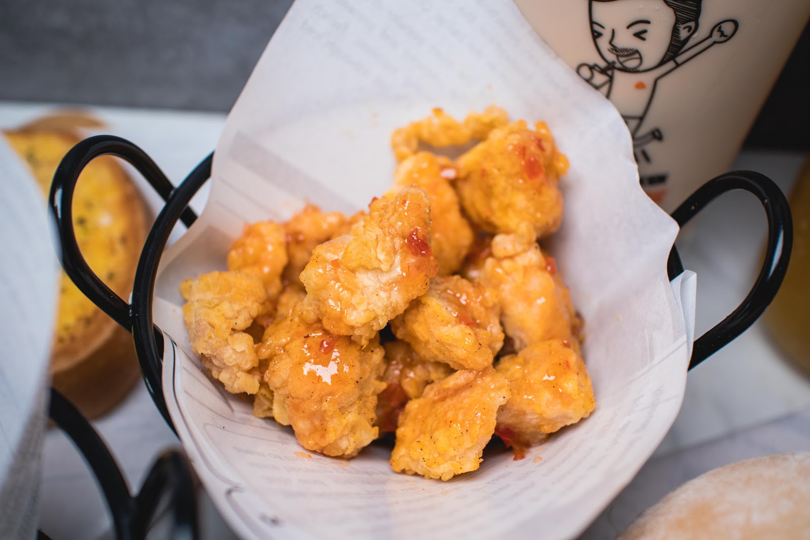 我們點了四號餐(雞翅+雞塊+雞腿)、三號餐(雞米花+麥克雞塊+小薯條)、無骨雞腿堡(原味/泰式)、厚牛滿分三明治、洋蔥圈、起司乳酪條、香蒜厚片、炸布朗尼、珍珠奶茶、厚奶蓋青茶。