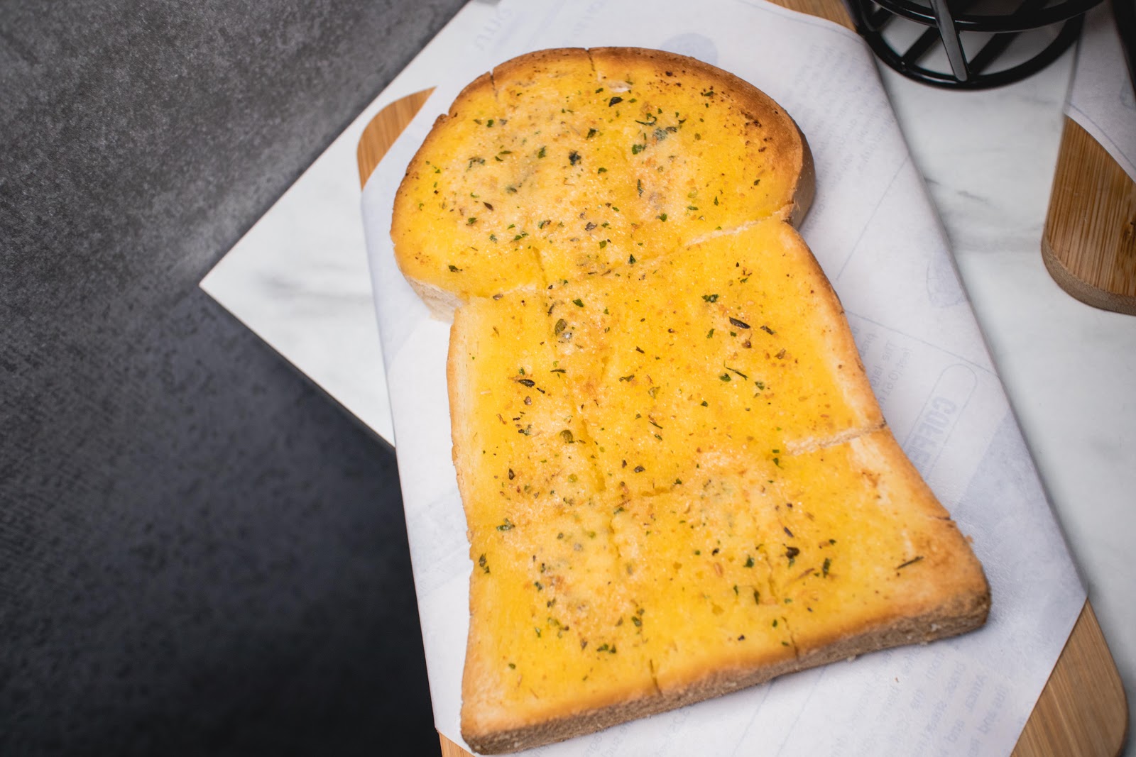 蒜香吐司口感紮實濃郁的蒜香氣。