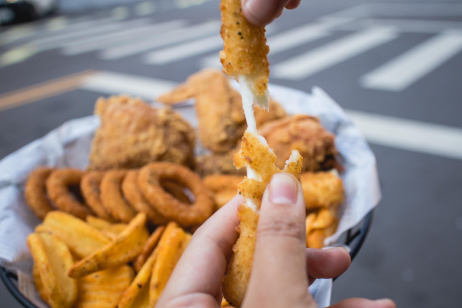 門口也有街邊用餐區,可以快速而不失優雅地品嘗美味炸物。